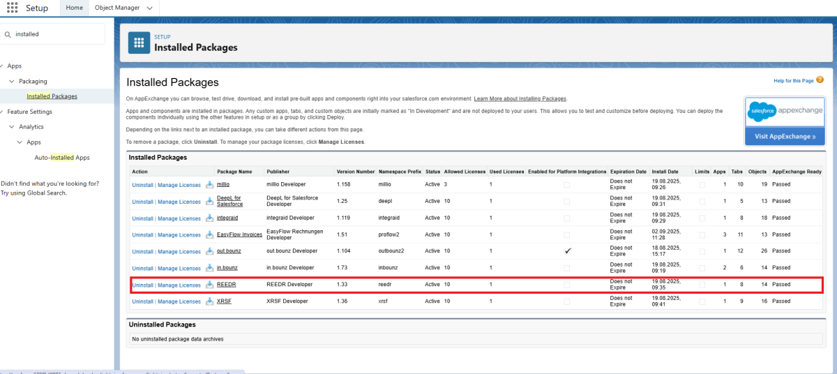 Die Installation von REEDR erfolgt via Salesforce AppExchange.